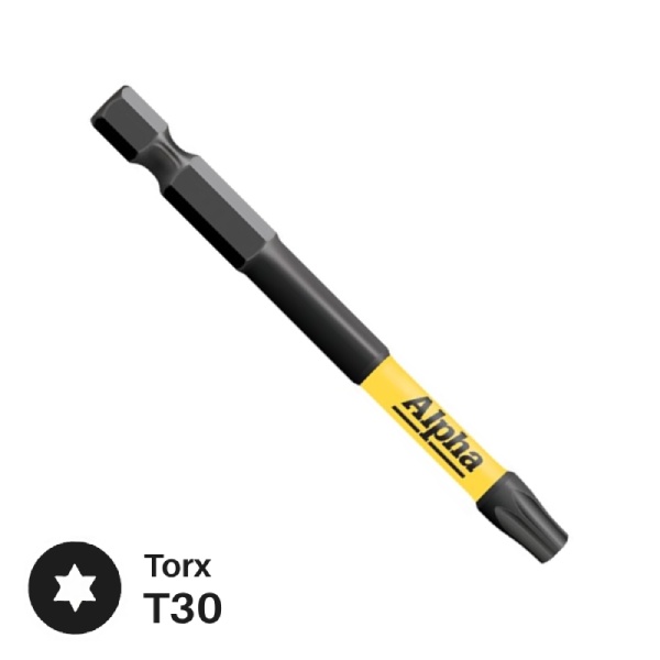 Torx T30 driver bit with 50x longer life for maximum durability. Ideal for metal-to-metal fastening, featuring superior magnetism for a secure hold and reduced cam-out, even under heavy torque loads.