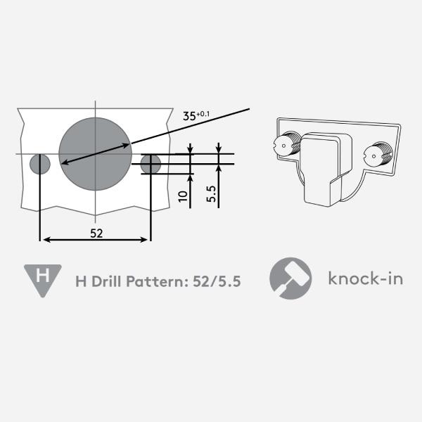 - Drilling Pattern: Hettich 52/5.5