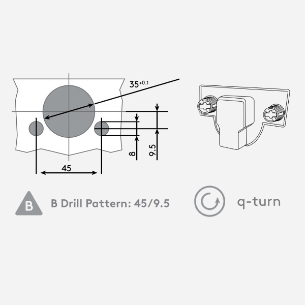 - Quarter-Turn Installation (∅8mm Expansion Dowel)