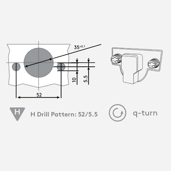- Quarter-Turn Installation (∅10mm Expansion Dowel)