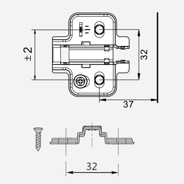 DTC C81 Screw-On HINGE PLATE Cross-Mount - H02