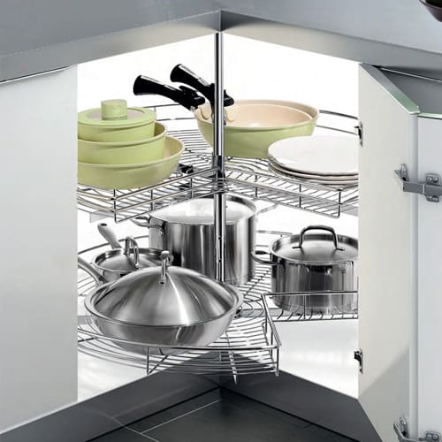 A Lazy Susan is an ideal way of converting hard to reach corner cupboard areas in the kitchen, into a useful organisational storage space. Bring items to the front with ease with a smooth rotating motion. Ideal for storing pots, pans and almost any kitchen utensil.