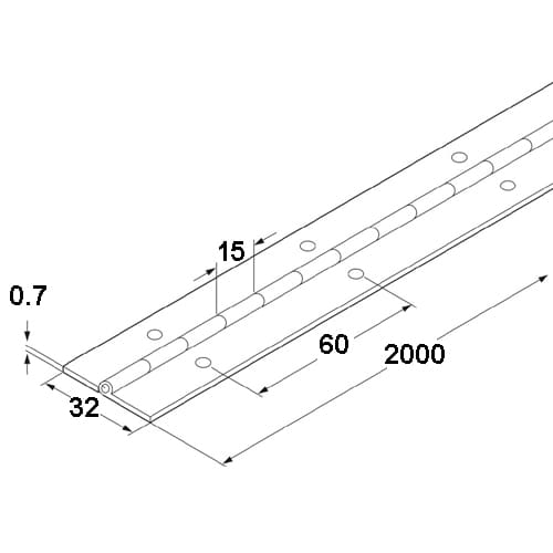 Continuous PIANO HINGE Length Steel 2000mm - NICKEL PLATE