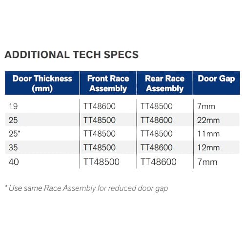 The Manhattan is a multi-door, sliding wardrobe and cupboard door track system. The system features ball bearing wheel assemblies with height adjustment slots. The aluminium double J track incorporates an anti-jump fin. Suited to 2, 3 and 4 door applications up to 50kg per door.