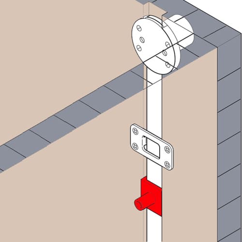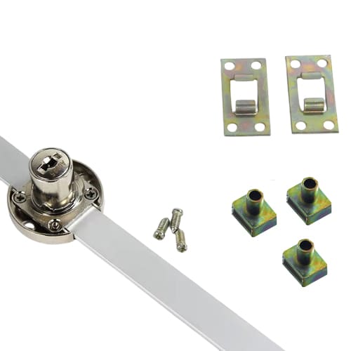 A side mounted multi drawer lock housing and bar for 3 drawers which includes 3 locking pegs with screws and 2 bar guides. The bar is mounted in a groove trenched into the side of the cabinet to allow the drawer runner to be mounted normally.