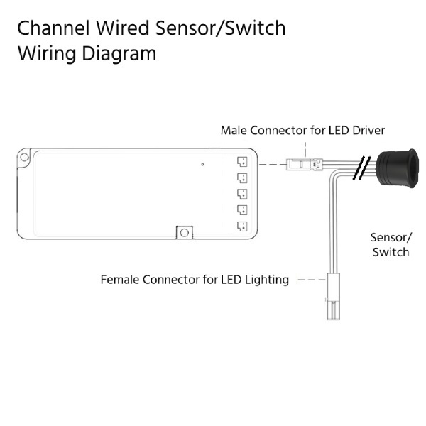 Channel Wired: This sensor plugs in between the driver output and the lighting. Inputs into this sensor will only control the lighting attached to the sensor, resulting in the ability to management of all lights connected to the driver independently from each other.