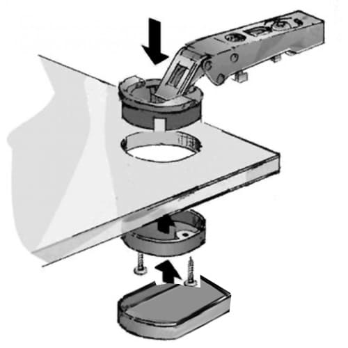 A decorative cover cap for use with the Hettich Intermat glass door hinge these cover cap sets include cap mount and fixing screws.