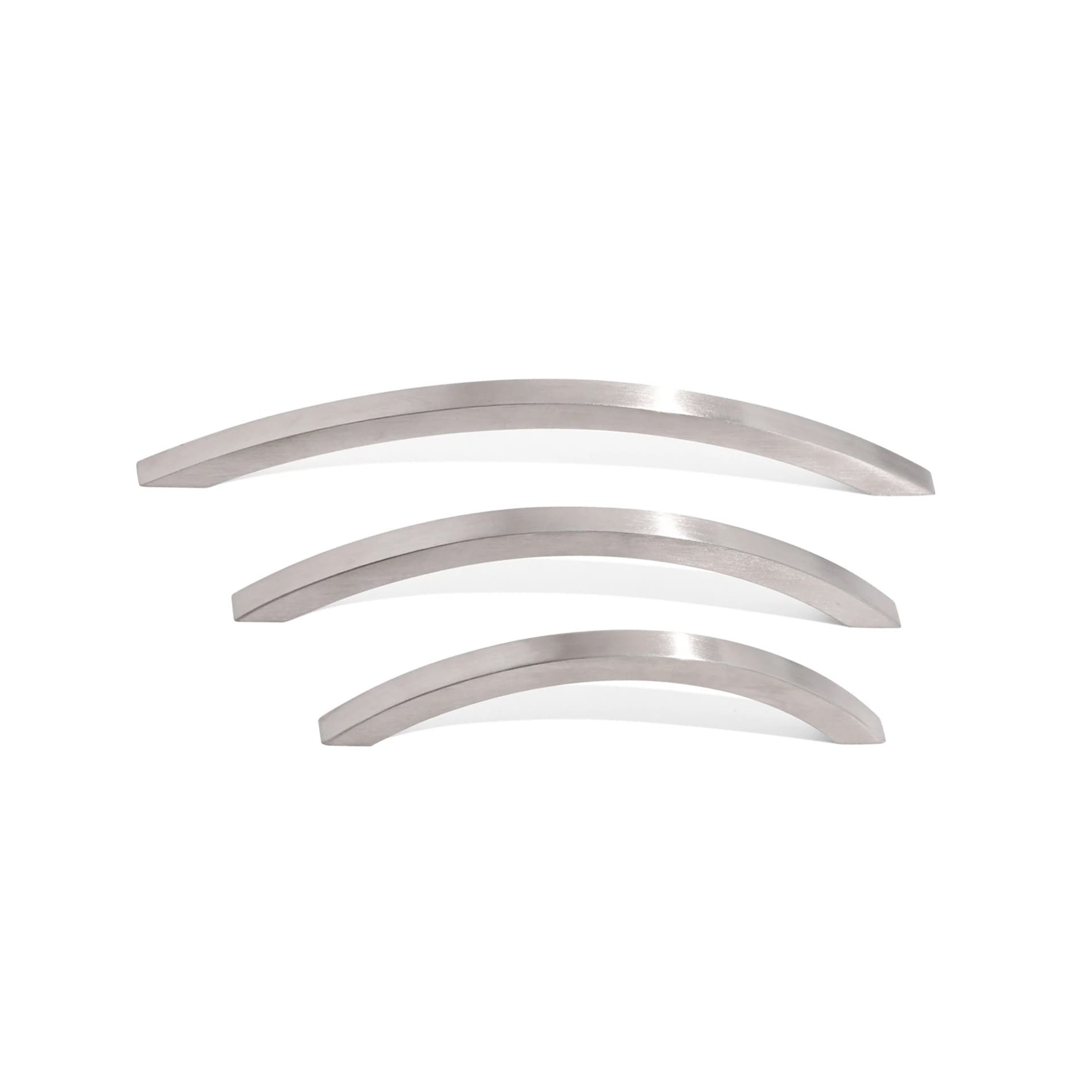 The Krome Cascade is a durable bow style cabinet handle typically finished in Brushed Stainless. It is a budget-friendly option for contemporary cabinetry.