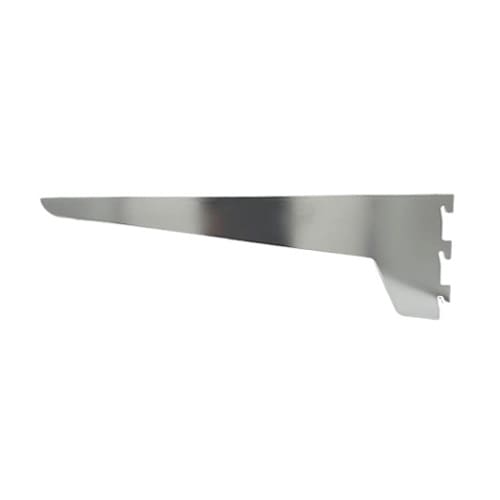 Single slot brackets are designed for use with matching single or double slot wall strips. It is made from lightweight high-quality steel and has a durable long-lasting nickel plated finish.