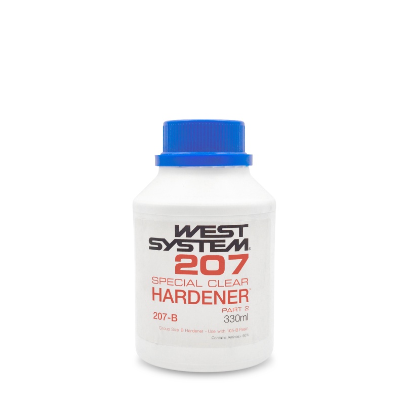West Systems 207 Hardener is used in conjunction with the 105 resin. 207 Special Clear Hardener has been specially developed for coating applications where a moisture resistant, natural wood finish is desired. Mixtures resist clouding in humid conditions and exhibit extremely low blush formation.